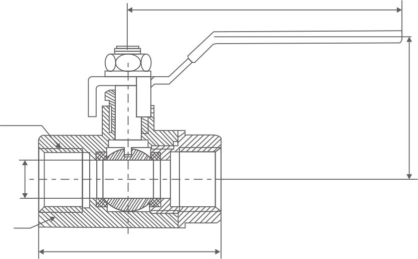 Q14F-16 Brass Tee Ball Valve (Model L) specifications and dimensions